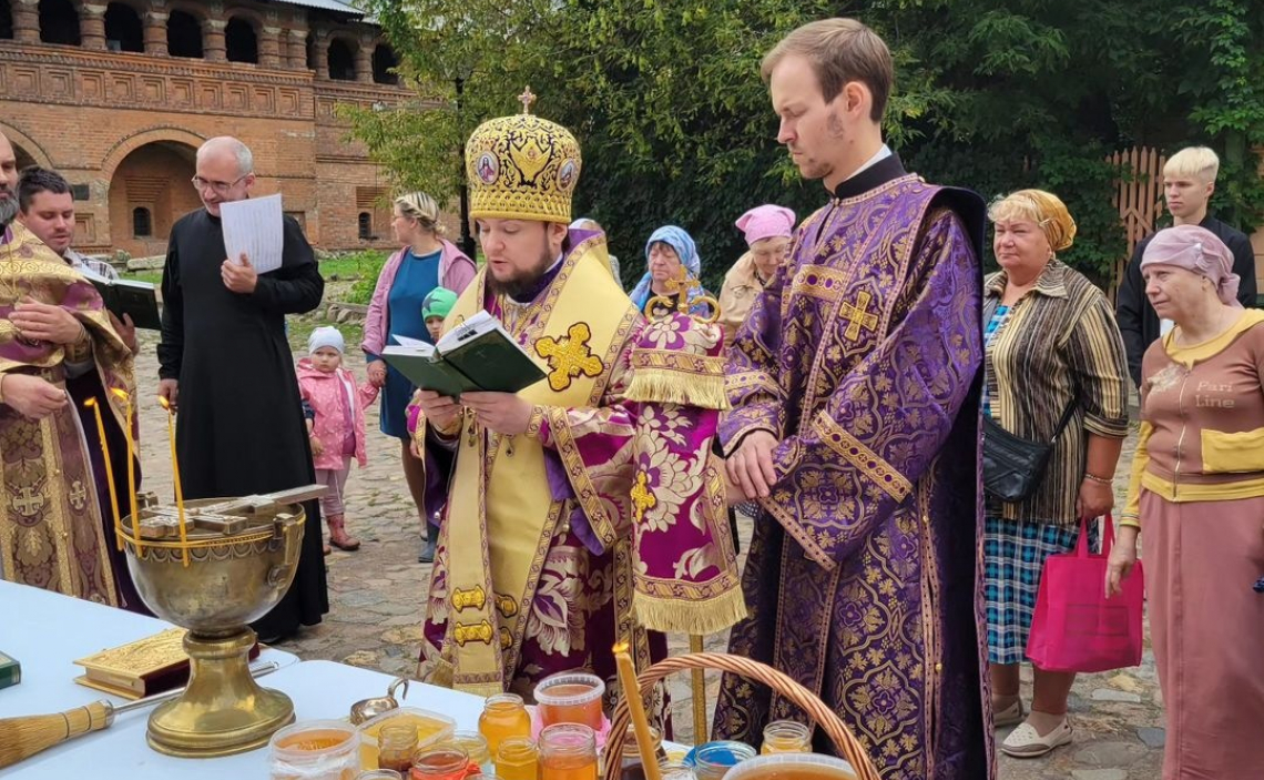 По окончании Божественной Литургии епископ Серафим возглавил водосвятный молебен с чином освящения меда нового сбора. Традиционно в этот день прихожане принесли на Богослужение мед и соты для их освящения.