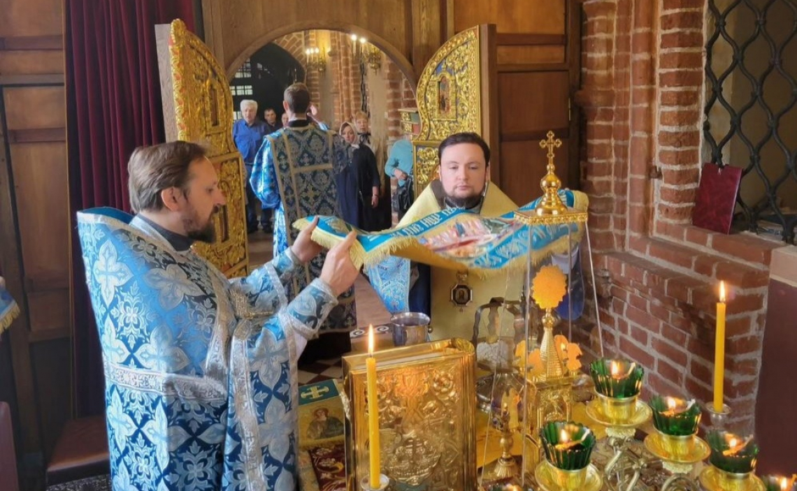 В праздник в честь перенесения Нерукотворного Образа Спасителя из Едессы в Константинополь епископ Истринский Серафим совершил Божественную Литургию в Свято-Успенском соборе Крутицкого подворья