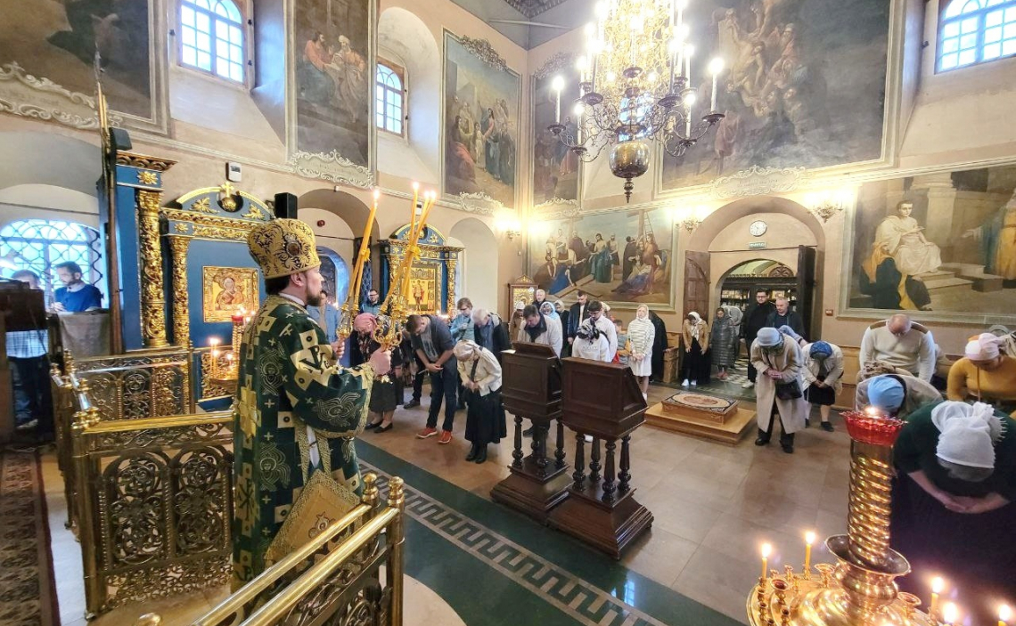 В праздник Святого Преподобного Иова, Игумена и Чудотворца Почаевского, епископ Истринский Серафим совершил Божественную Литургию в Свято-Успенском соборе Крутицкого подворья