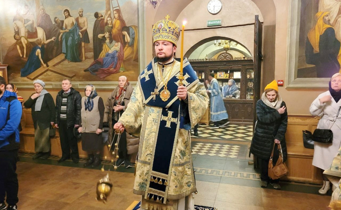 В канун праздника Покрова Пресвятой Богородицы епископ Истринский Серафим совершил всенощное бдение в Свято-Успенском соборе Крутицкого подворья