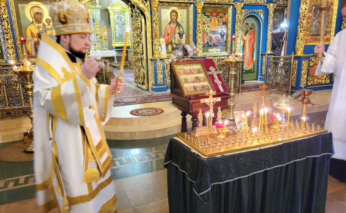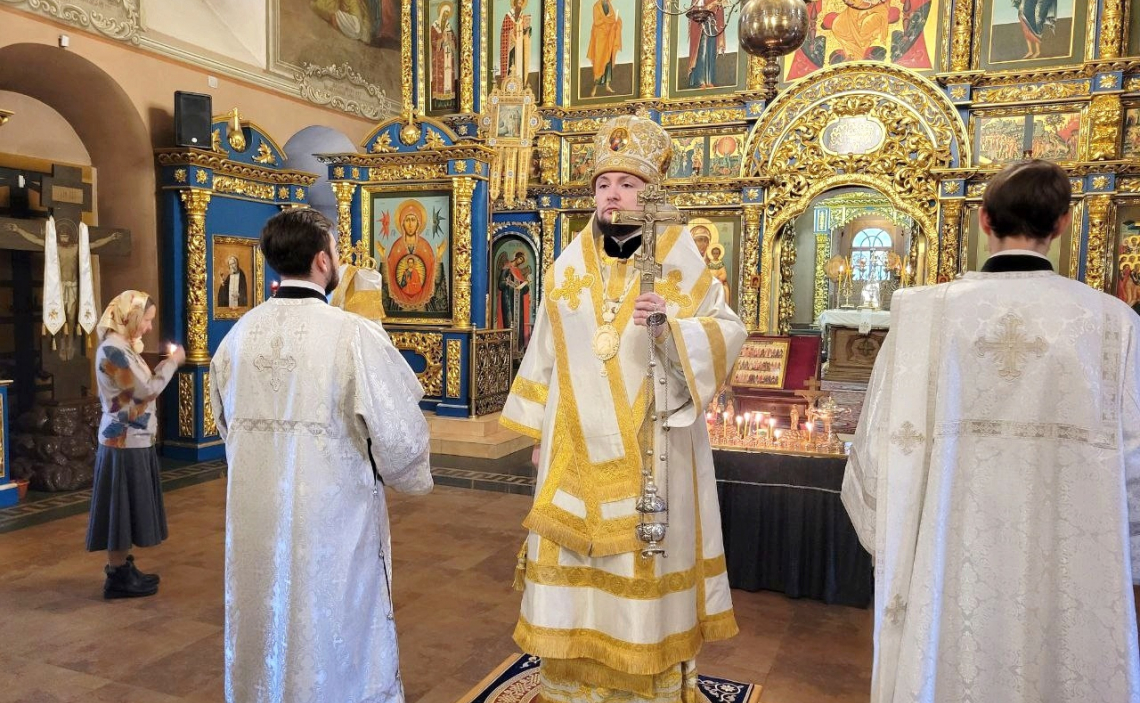 На утрени епископ Серафим возглавил полиелей, за Литургией по сугубой ектении Владыка вознес молитву о восстановлении мира.