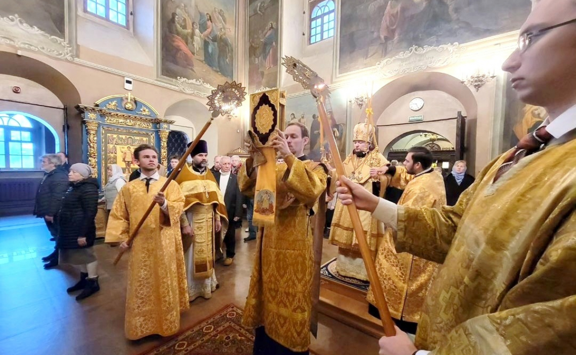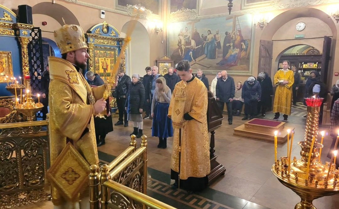 В Неделю 21-ю по Пятидесятнице епископ Истринский Серафим совершил Божественную Литургию в Свято-Успенском соборе Крутицкого подворья