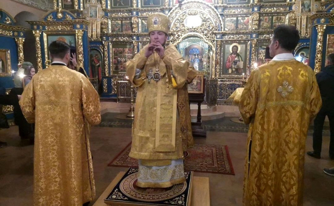 В канун Недели 22-й по Пятидесятнице епископ Истринский Серафим совершил всенощное бдение в Свято-Успенском соборе Крутицкого подворья