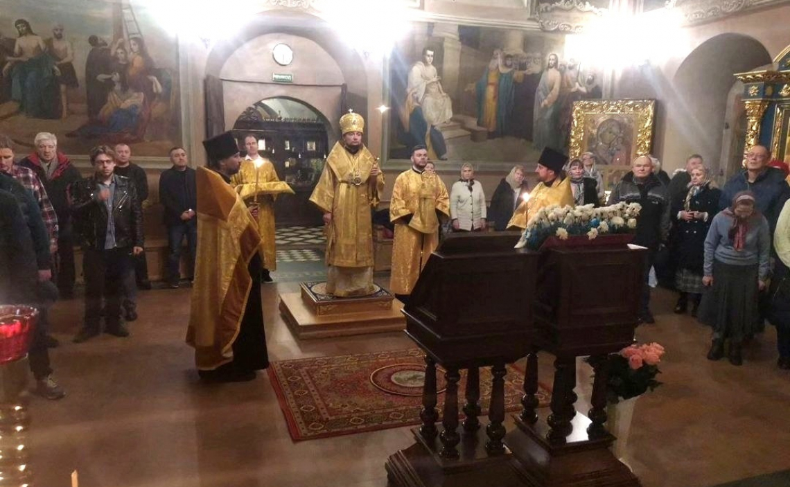 За вечерним Богослужением епископ Истринский Серафим совершил литию с освящением хлебов, пшеницы, вина и елея. Во время утрени, по прочтении Святого Евангелия, архипастырь помазал духовенство и верующих освященным елеем.