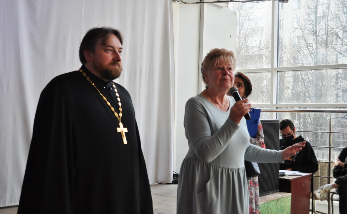 С приветственным словом к молодым людям обратились руководитель Епархиального отдела по делам молодежи Вятской Епархии — протоиерей Сергий Ендальцев и руководитель центра русской культуры и письменности "МИР" — Крылова Людмила Георгиевна.