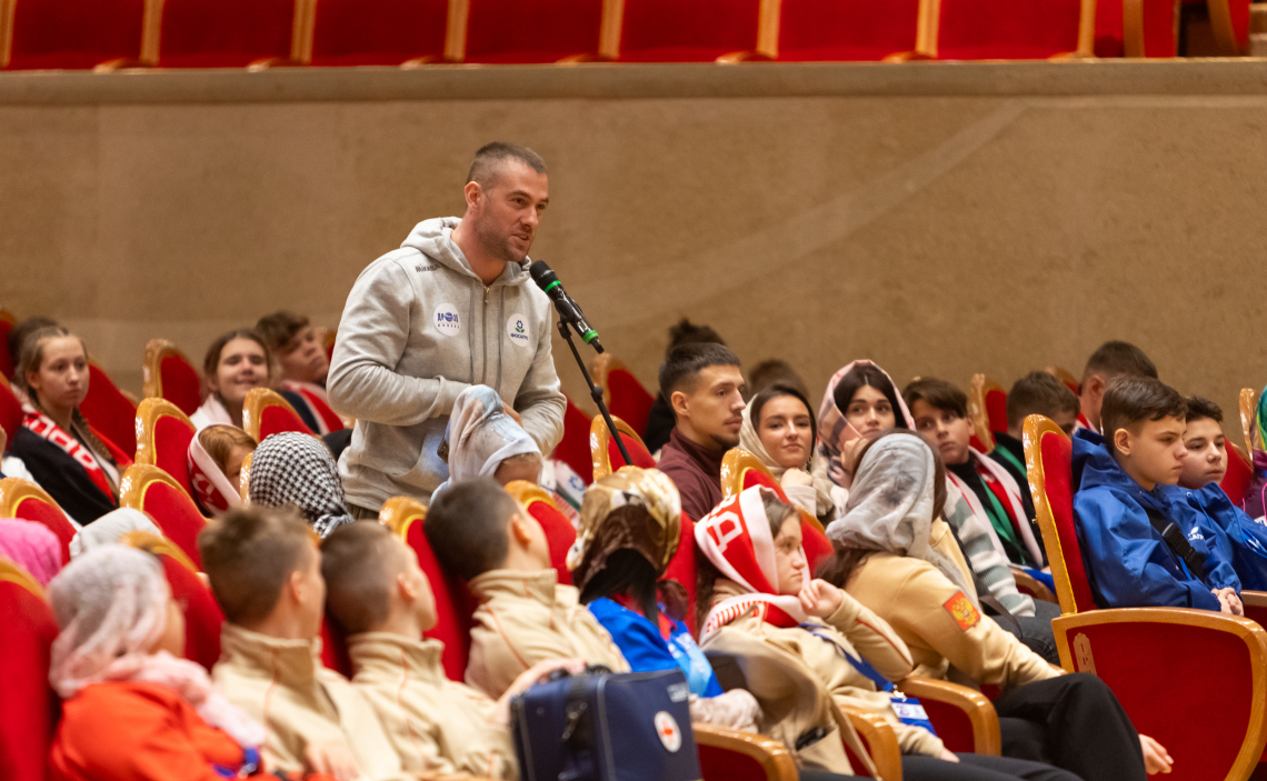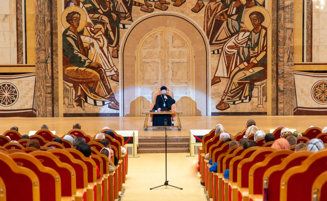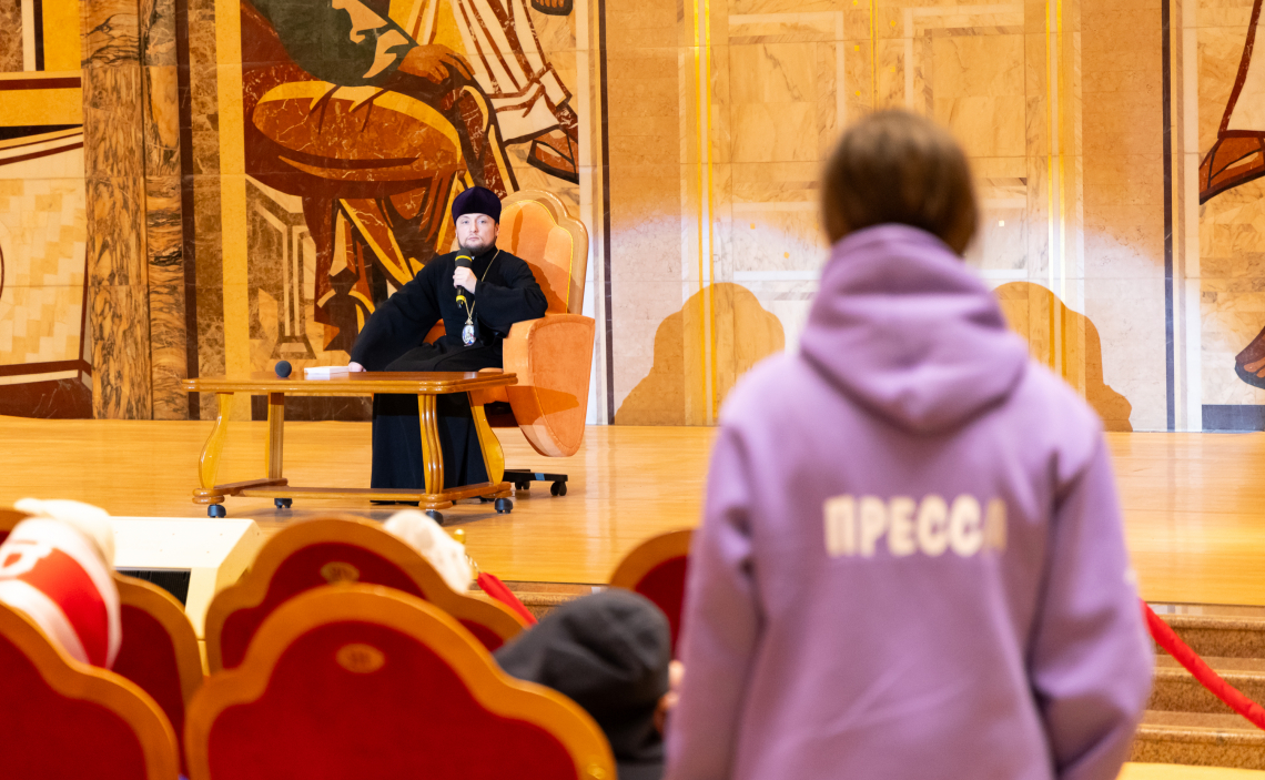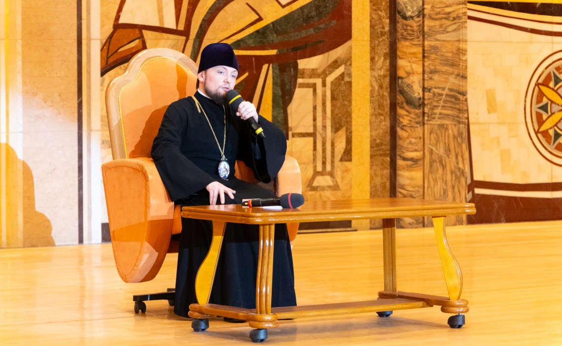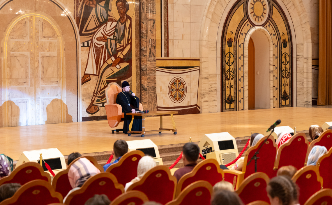 «Мне очень приятно сегодня встречать вас здесь в Соборном храме Христа Спасителя, – сказал епископ Серафим, – Перед нашей встречей я ознакомился с тем, в каких школах вы обучаетесь, чему вы посвящаете свое время и меня порадовало то, что все вы стараетесь сопрягать стремление к науке, занятия спортом, а также возрастание в духовной и патриотической плоскости. Это очень правильно, ибо только в этом случае, всестороннего развития человеческая личность может правильно формироваться, развиваться и духовно, и физически, и нравственно, и разумно. Молодой человек старается найти для себя ответы на то, как стать счастливым, в чем заключается смысл жизни, как достичь благополучия. Это все – правильные вопросы, на которые действительно нужно искать ответы, но эти ответы не лежат в какой-то одной плоскости. Человек действительно может обрести счастье, благополучие, может ответить на вопросы о смысле жизни только в том случае, если он старается быть развитым всесторонне, если он старается одновременно постигать науку, развиваться творчески и совершенствоваться духовно».