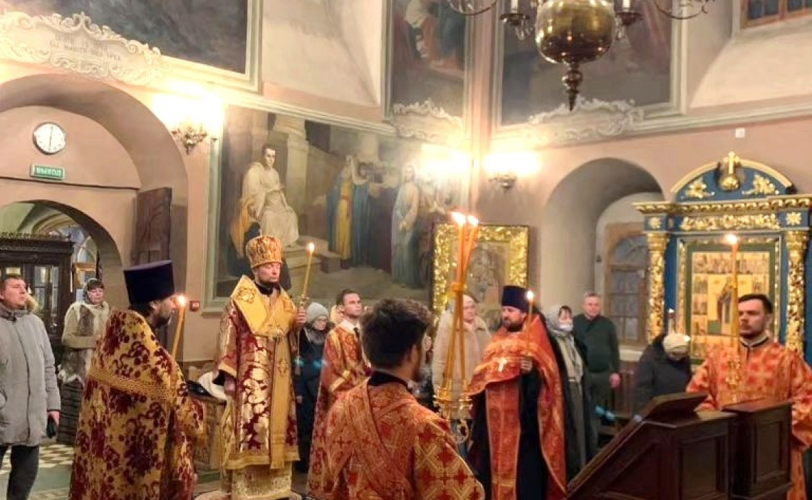 В канун Недели 28-й по Пятидесятнице епископ Истринский Серафим совершил всенощное бдение в Свято-Успенском соборе Крутицкого подворья