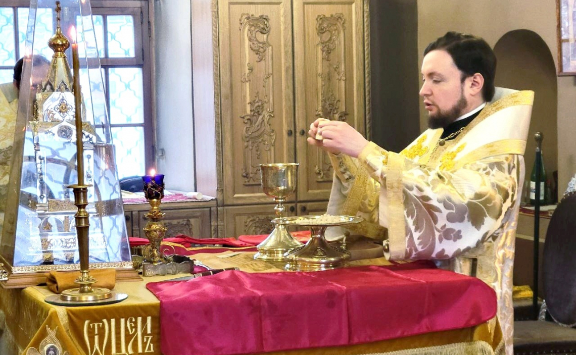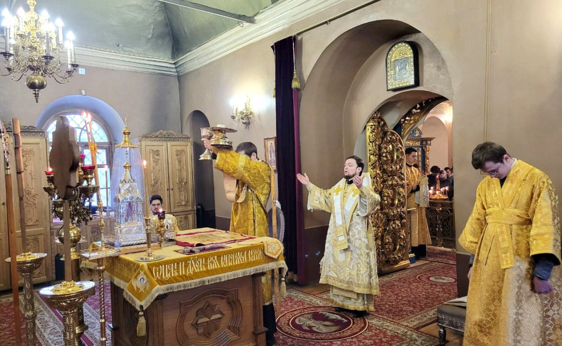 В Неделю 29-ю по Пятидесятнице епископ Истринский Серафим совершил Божественную Литургию в Свято-Успенском соборе Крутицкого подворья