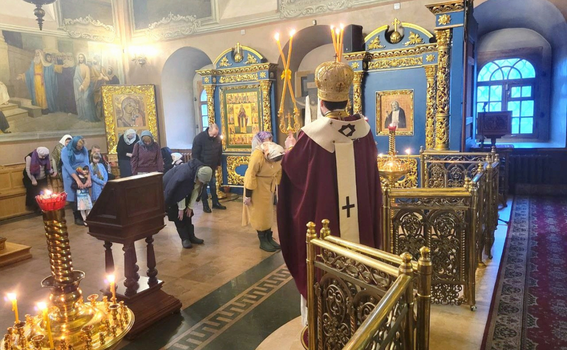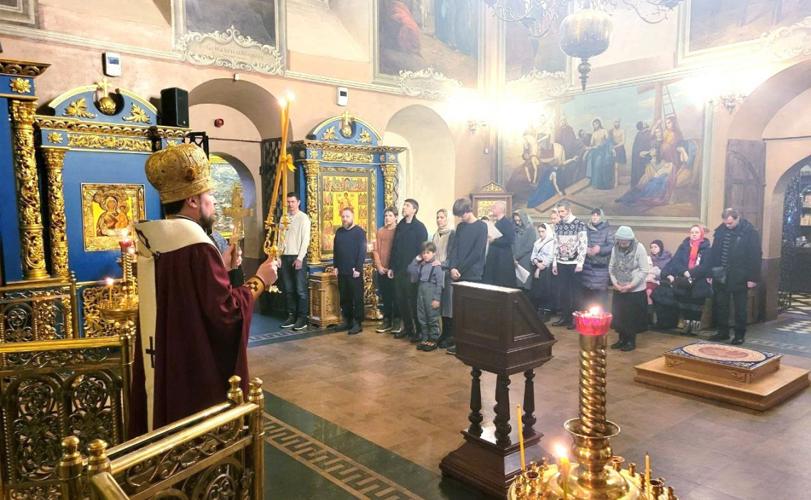 Его Преосвященству сослужило духовенство храма. Песнопения исполнил мужской хор Крутицкого подворья. Молитвенное участие в Богослужении приняли прихожане Свято-Успенского собора разных поколений.