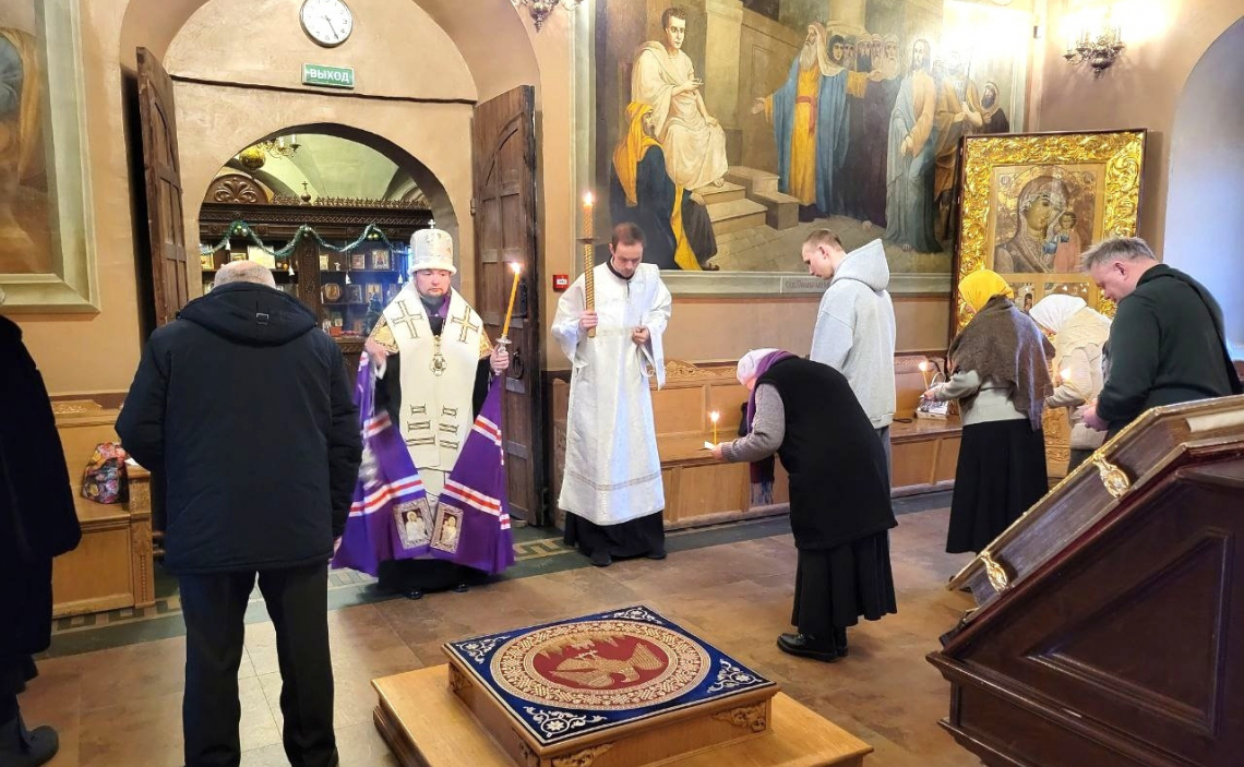 В предпразднство Рождества Христова епископ Истринский Серафим совершил Великие Царские часы и изобразительны в Свято-Успенском соборе Крутицкого подворья