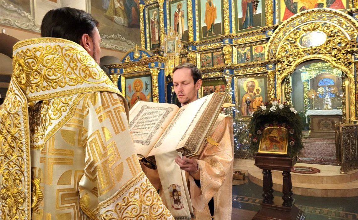 На протяжении Богослужения многократно был исполнен тропарь Рождества Христова. Во время литии Владыка освятил хлеб, пшеницу, вино и елей, а на утрени возглавил полиелей.