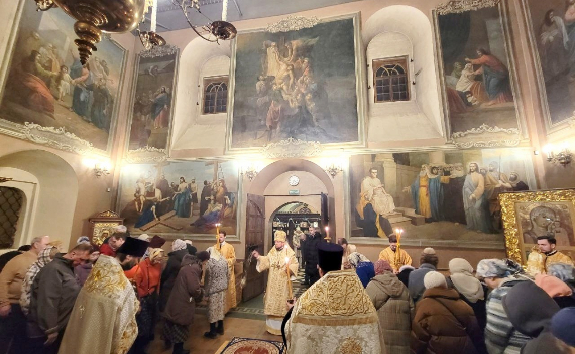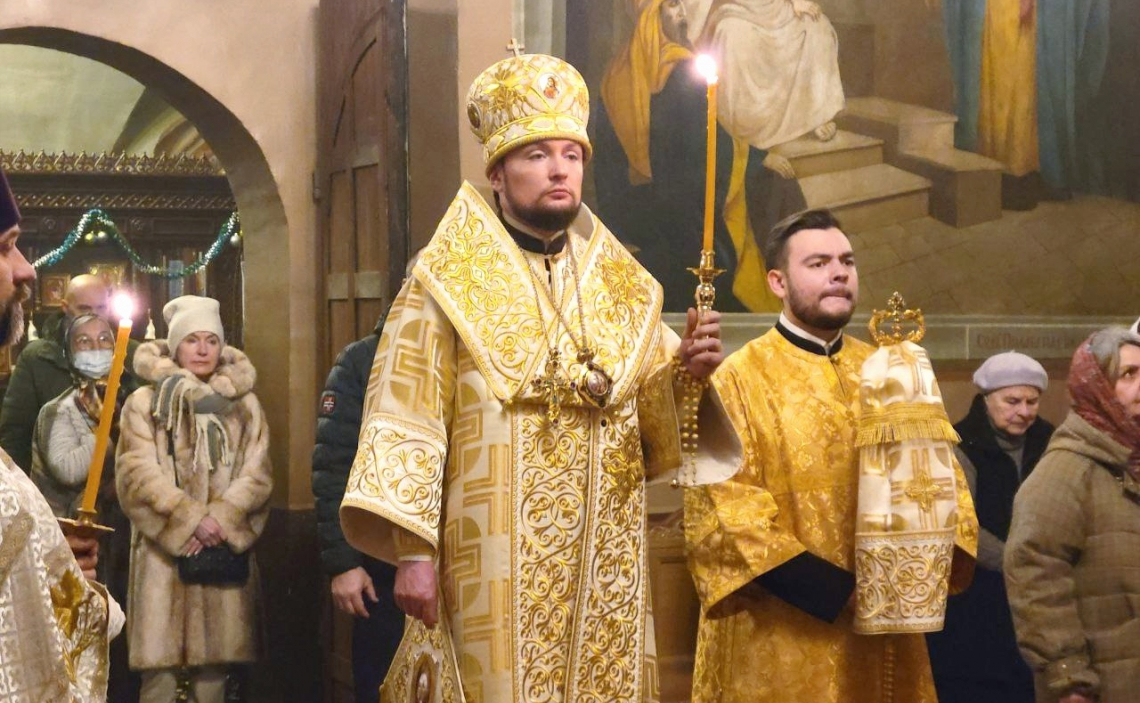 В канун Праздника Рождества Христова епископ Истринский Серафим совершил Великое Повечерие с литией и утреню с полиелеем в Свято-Успенском соборе Крутицкого подворья