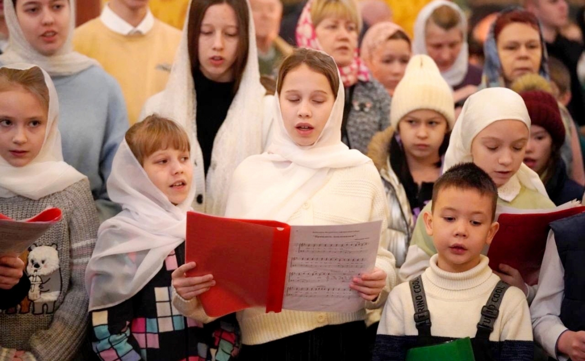Богослужебные песнопения исполнил сводный хор детско-юношеских коллективов приходов Центрального благочиния: кафедрального собора преподобных Афанасия и Феодосия Череповецких (регент Иулия Елисеева), Архиерейского подворья Воскресенского собора (регент Лариса Кобзарь), храма Рождества Христова (руководитель Мария Герасимова), храма преподобного Сергия Радонежского (регенты Анна Масленникова и Иулия Торопова) и строящегося храмового комплекса святителя Николая Чудотворца (регент Мария Хренова).