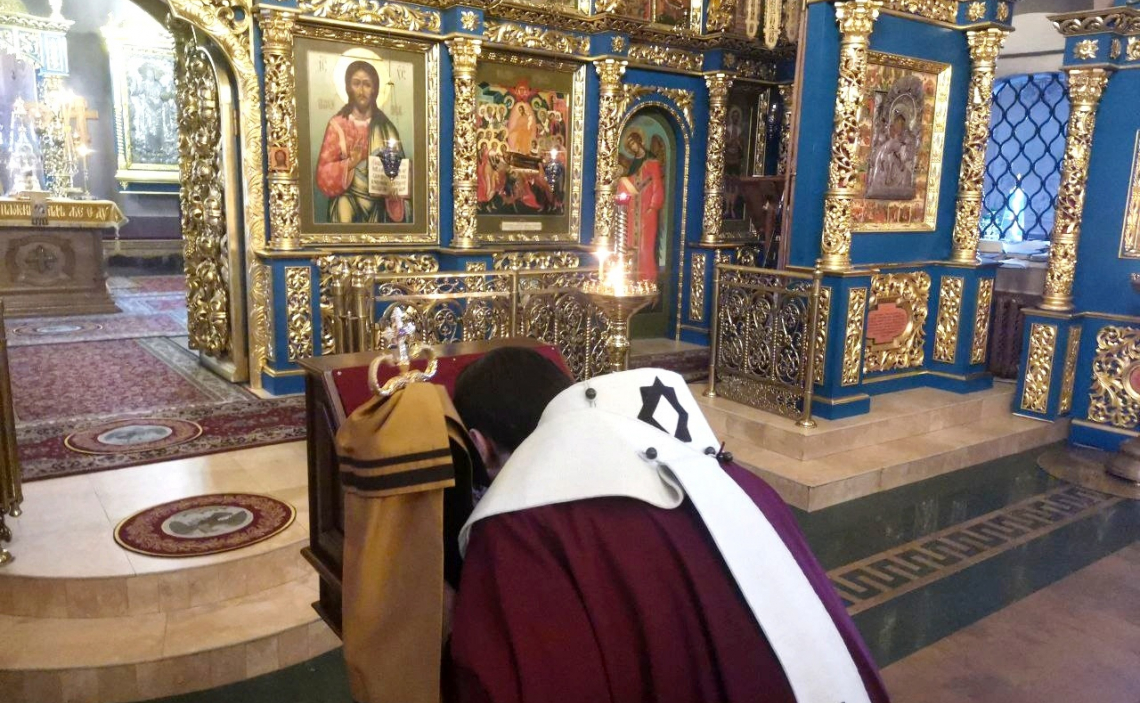 По заамвонной молитве епископ Серафим поздравил всех верующих с праздником и обратился к молящимся с проповедью.