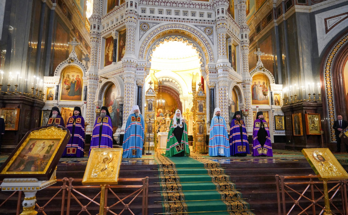 На сугубой ектении были вознесены особые прошения, Предстоятель Русской Церкви прочитал молитву о Святой Руси.