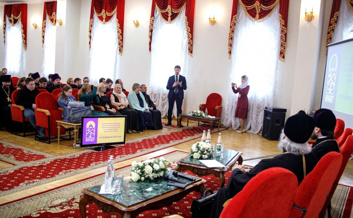 С 16 по 18 февраля 2024 года в зале паломнического центра Иоанно-Богословского Макаровского монастыря Саранска прошли мероприятия IX Межрегионального форума руководителей и актива епархиальных молодежных отделов Приволжского федерального округа «Пересвет». В этом году форум посвящен теме «Семья и патриотизм – связь поколений». Обсудить наработки в области молодежного служения в собрались руководители молодежных отделов епархий Приволжья, общественные активисты, члены молодежных организаций.