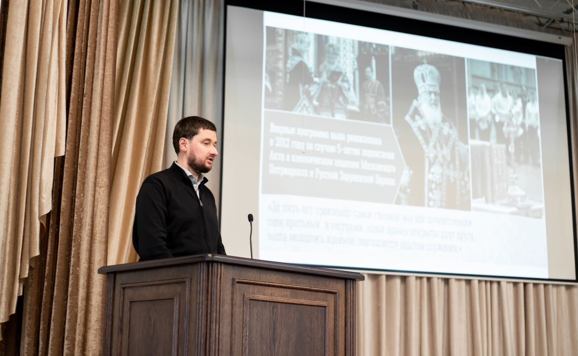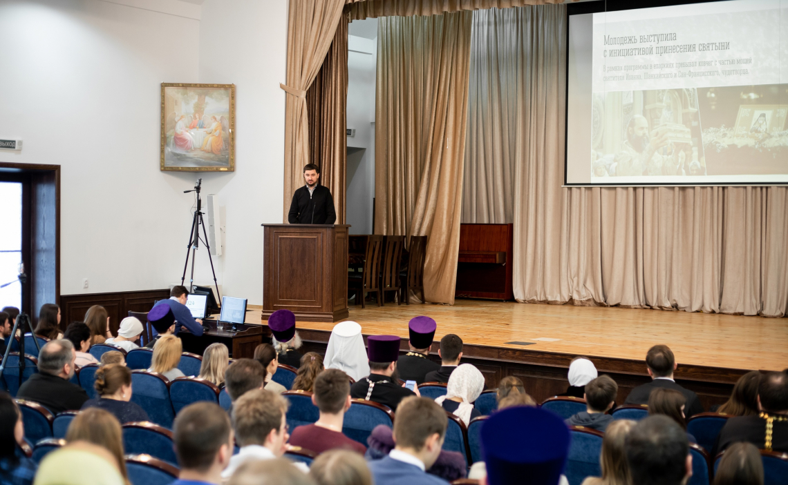 16 февраля в актовом зале Минской духовной академии прошла торжественная часть форума православной молодежи Белорусской Православной Церкви «Праведники живут вовеки (Книга премудрости Соломона 5:15). Роль святости в жизни христианина», приуроченного к празднику Сретения Господня и Всемирному Дню православной молодежи. С приветственным словом к участникам форума обратился руководитель программы «Духовная связь» Вадим Валерьевич Степанов, который передал благопожелания от лица председателя Синодального отдела по делам молодежи епископа Истринского Серафима и ознакомил собравшихся с программой «Духовная связь», а также презентацией Всецерковного православного молодежного движения «Верные».