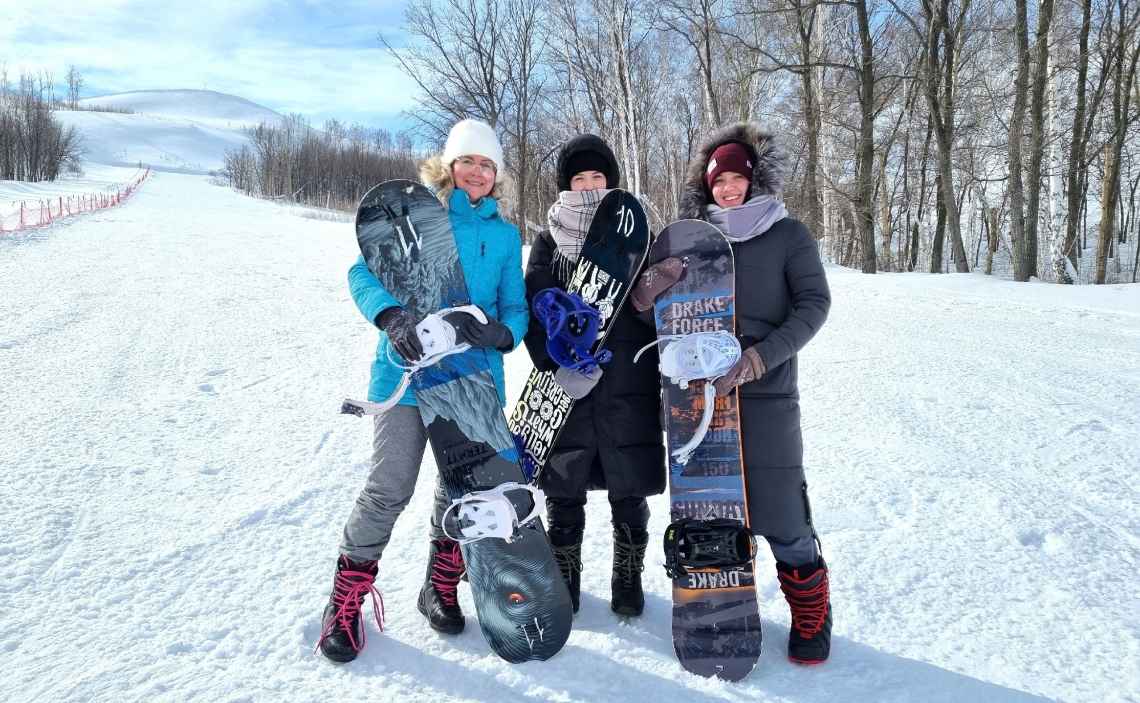 По прибытии всем предоставили спортивный инвентарь. В споре между лыжниками и сноубордистами победили… любители тюбингов. Дорожка для катания на «ватрушках» сразу стала пользоваться большим спросом. Катание на снегоходе по заснеженным вершинам гор также было очень популярным.