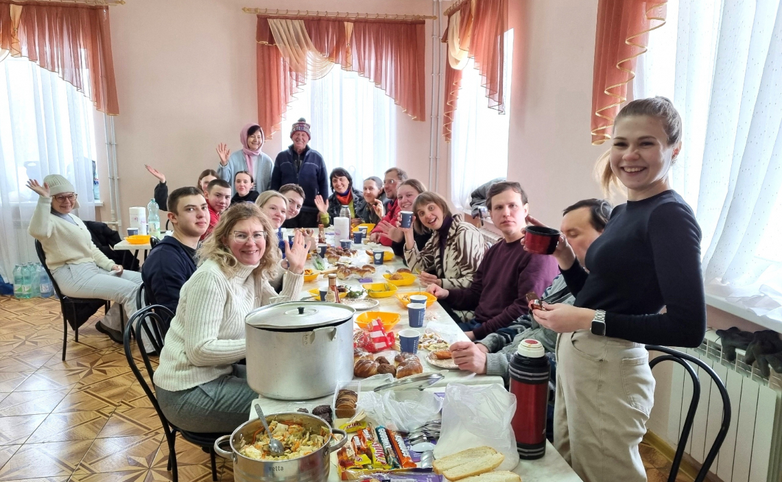 Проведя на заснеженных горах более трёх часов, молодёжь отправилась готовить обед. Весьма кстати оказались блюда, приготовленные на углях, горячий травяной чай и беседа со священником – Андреем Пелипенко, руководителем молодёжного отдела.
